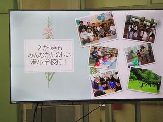 校長からは、「2学期もみんなが楽しい港小学校にしましょう!」「そのためには、どうしたらいいかな?」という話をしました。子どもたちは、急に聞かれても難しいという感じでしたが、一生懸命考えていました。「みんなで助け合う」「元気なあいさつを続ける」「運動会をがんばる」などの意見がでました。また、2学期を過ごしていく中で、「チームみなと」みんなで考え、行動できるようにがんばっていきたいと思います。そして、子どもたち一人一人のよさを更に伸ばすことができるよう、全職員で指導・支援していきたいと思います。2学期も、ご協力・ご支援をよろしくお願いいたします。