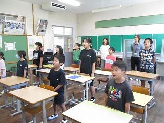9月3日、1~3年生の合同音楽がありました。今日は、「虫のこえ」を歌いました。はじめて聞いた子どもたちもいたようでした。歌詞の中に出てくる虫の名前を確認したり、デジタル教科書で虫の鳴き声を聞いたりしながら、曲に慣れ親しみました。最後は、虫の声の特徴をよくつかんで、楽しく歌うことができました。秋を感じた時間になりました。
