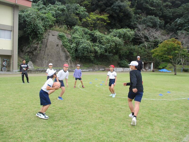 今日は、体育でボール運動をしていました。本来は体育館でバスケットボールの計画でしたが、学習発表会の準備のため体育館は使用できないので、運動場でポートボールをしていました。広くてきれいな芝生の運動場で、思いっきりボール運動を楽しんでいました。大きなイチョウの木に見守られながら、子どもたちはぐんぐん成長しています。