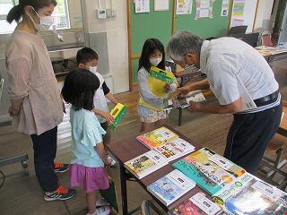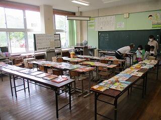幸い、雨が上がっていたので児童は楽しそうに本を選んでいました。
