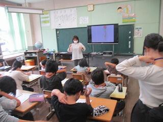 3校時の合同学活で、養護教諭の田中先生から正しい姿勢について教えていただきました。