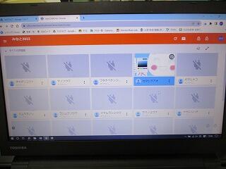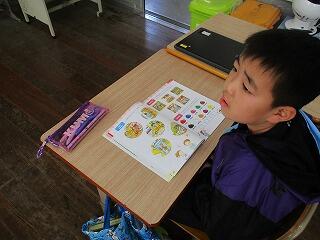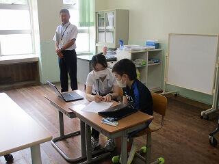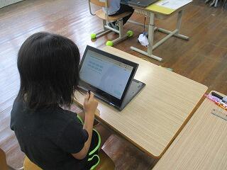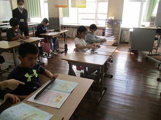 1、2年生がプリントやタブレットを使って自学自習をしている様子です。