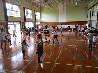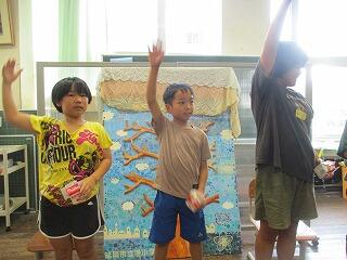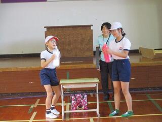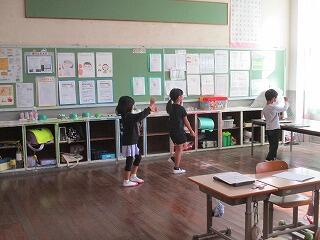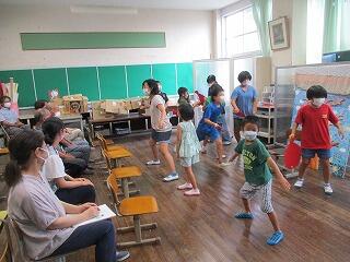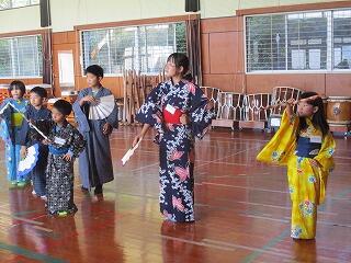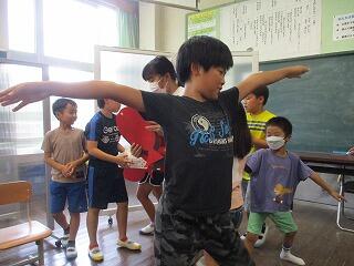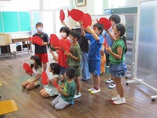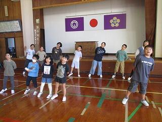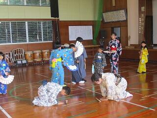 放課後子ども教室の時間に日本舞踊の練習をしていました。