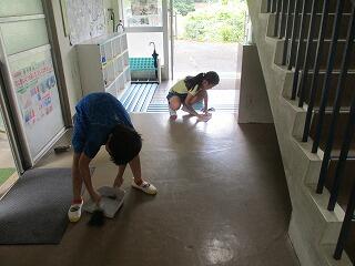 浦城小学校のプールをお借りしますので、今日は全員でプール清掃のお手伝いにうかがいました。