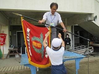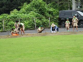 お天気が心配でしたが、予定して奉仕作業と港みどりの少年団結団式を実施できました。