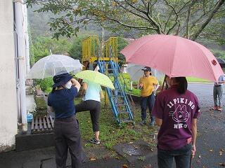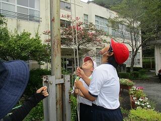 大雨等の水害の際の注意を学んだ後、4階の教室へ避難する練習をしました。