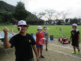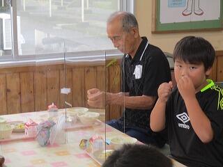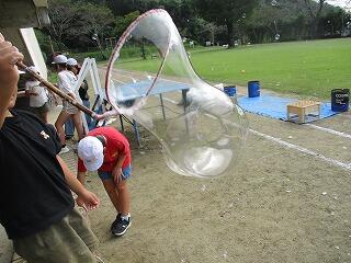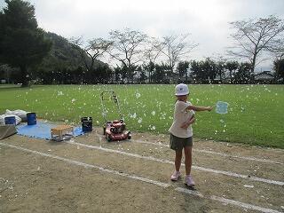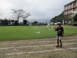 放課後子ども教室で、安全管理員さんとしゃぼんだま遊びをしていました。