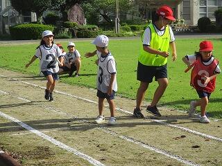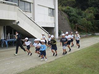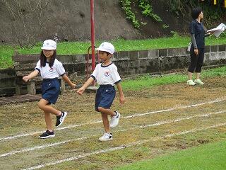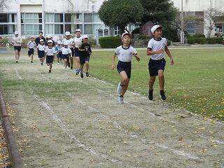 上学年と下学年合同の体育の授業で、運動会のチャレンジ走の練習をしていました。