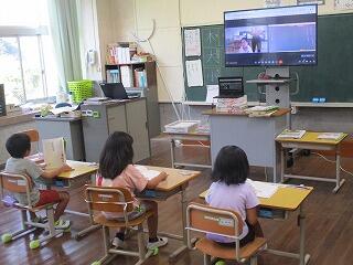 浦城小学校とオンラインでつなげて、道徳の授業をしました。