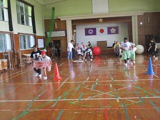 今日は、6年生が国語の話合い学習で企画した「はないちもんめ」をみんなで楽しんでいました。