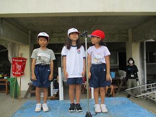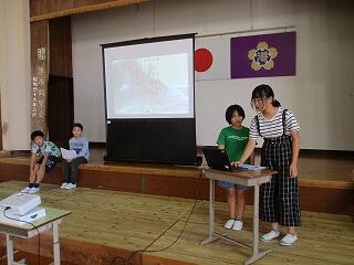 7月29日の「延岡大空襲の日」を前に、かたりべグループの方を講師にお招きして平和学習を行いました。講話後は、6年生の児童が代表でお礼の言葉を述べました。