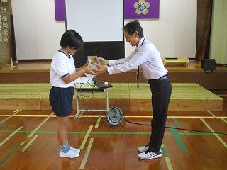 各種表彰の後、今月の目標、「読書にはげもう」ということについて連絡がありました。