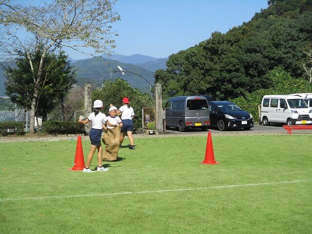 10月6日、運動会でした。小雨の降る中でしたが、開始時間を少し遅らせてスタートしました。プログラムの順番を変更したり、一部の種目を体育館で行ったりと、臨機応変に対応しながらの実施となりました。子どもたちは、急な順番の変更があったり、雨が降り出したりではありましたが、落ち着いて行動し、これまでの練習の成果を思う存分発揮しました。すばらしかったです!親子団技では、お家の方と仲良く楽しく競技し微笑ましかったです。体育館で実施したばんば踊り・ばんば太鼓には、地域の方や保護者のみなさんにもたくさん参加していただきました。大変盛り上がりました。