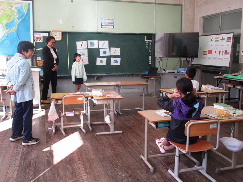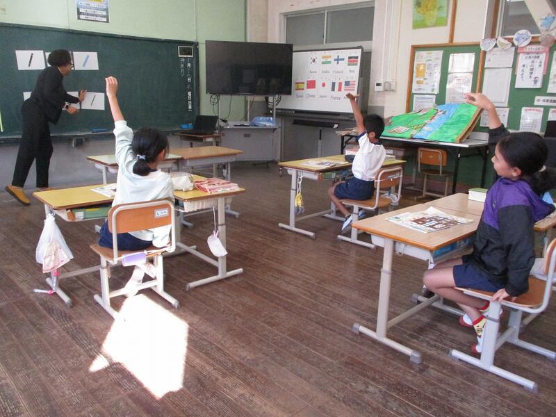 10月29日、3・4年生が外国語活動で「Do you have a pen?」の学習をしていました。楽しくゲームをしながら、文房具の名前を外国語で何度も話して慣れ親しんでいました。みんな笑顔で学んでいました。