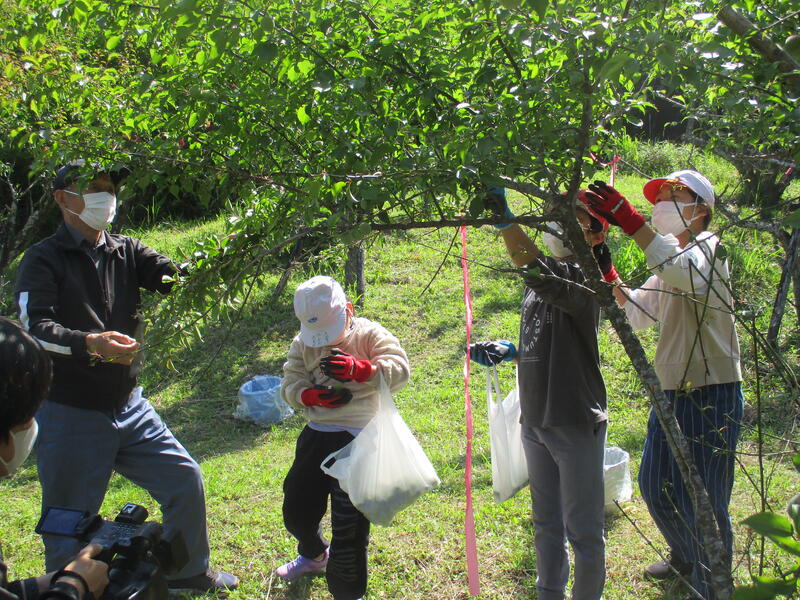 本日、学校の裏にある梅林で梅ちぎりを行いました。保護者と地域の方10名に来ていただいて、児童と一緒にちぎりました。昨年度は梅木の生長を促すために枝打ちをしたので、収穫量が大変少なかったのですが、本年度は約80kgの収穫がありました。選別作業をしたあと、地域の方に梅を販売しました。豊作だったことに喜びを感じながら一生懸命、梅ちぎりができました。