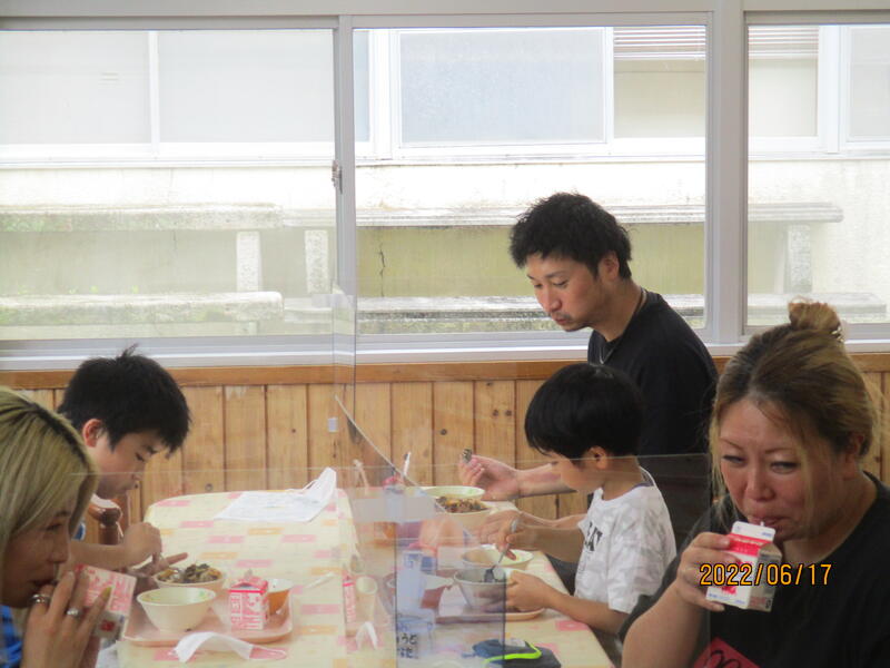 本日、1~3年生の保護者の方を対象に給食試食会を行いました。子どもたちの給食当番の様子や給食中、歯みがきの様子などを見ていただきました。また、栄養教諭の土井先生にもお越しいただいて、その様子を見ていただきました。子どもたちもいつもと違って、おうちの人と一緒に給食を食べることができて大変喜んでいました。
