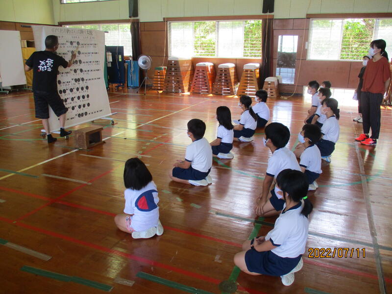 本日、文化庁の文化芸術による子ども育成推進事業として、能楽公演が行われました。この公演は、毎年、延岡城址で行われている天下一薪能の演者でもある片山家能楽・京舞保存財団の方によるものでした。子どもたちは、5月にワークショップを行い、本公演の演目でもある「舎利」の一部を稽古し、本日、見事に発表をすることができました。3週間という短い期間で練習を重ね、多くの方の前で発表ができました。また、能楽師の方の仕舞や謡を間近に見ることができ、その立ち振る舞いや厳かさに圧倒され、日本の伝統文化並びに世界文化遺産である能について関心をもつことができました。片山家能楽・京舞保存財団の方々にこの場を借りてお礼申し上げます。ありがとうございました。