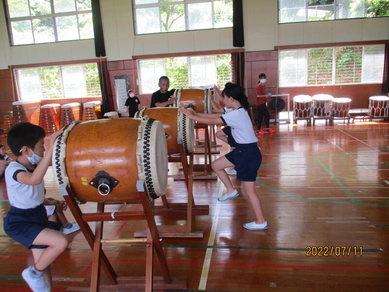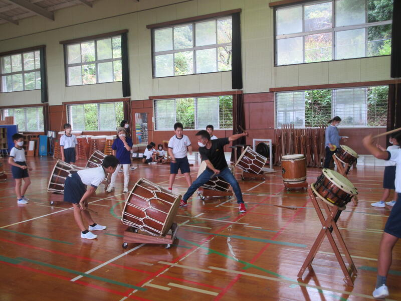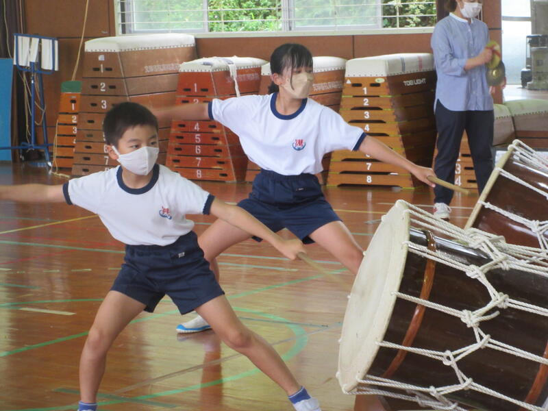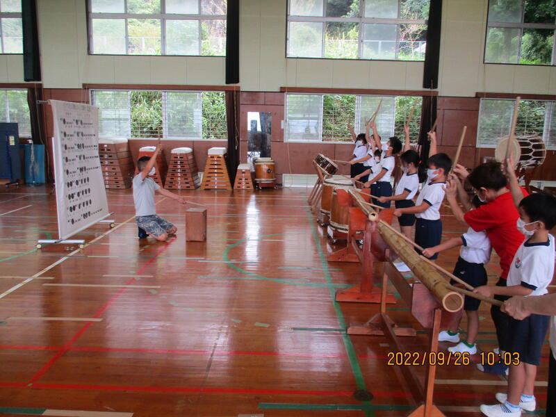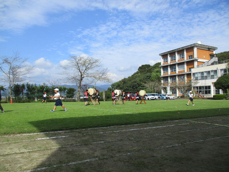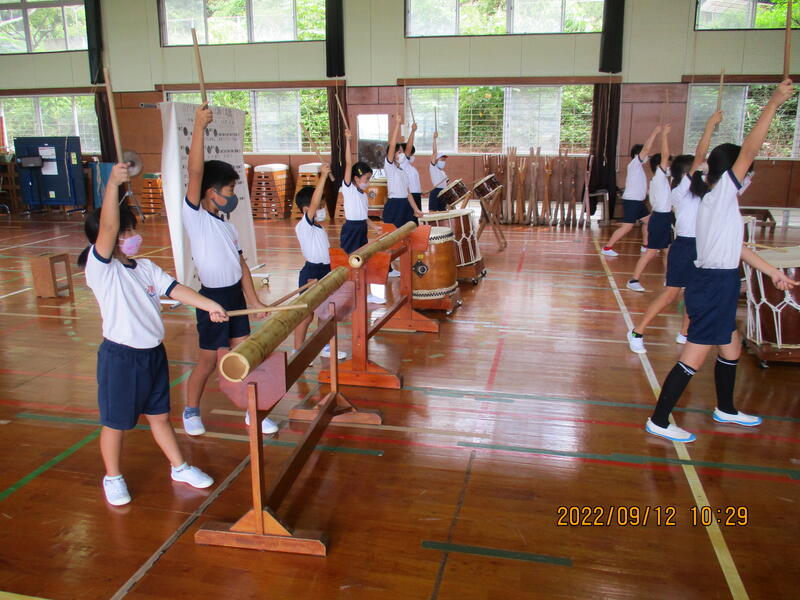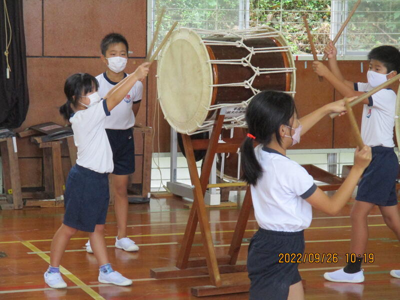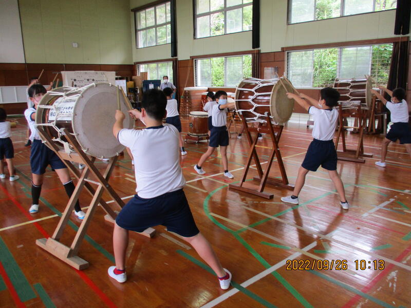 運動会も終わり、11月には学習発表会があります。学習発表会では、各学年の学習の成果や太鼓、日本舞踊の発表を行います。学習発表会に向けて、太鼓の発表では3演目を披露する予定です。リズムや体の動きなどが難しいので、一つ一つ確かめながら一生懸命練習に取り組んでいます。
