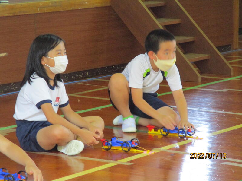 6月に続いて本日、2回目の居住地校交流がありました。3校時の理科では、ゴムの力を使って車を走らせる実験(競走)をしました。薫くんも3年生の友達と一緒に楽しく活動することができました。4校時の体育では、1~3年生までの友達と前転や後転の練習をしました。2時間の交流でしたが、本日も港小の仲間の一員として学習する楽しさを感じていました。