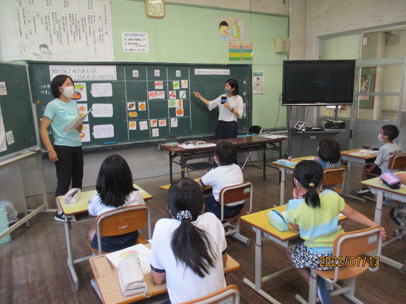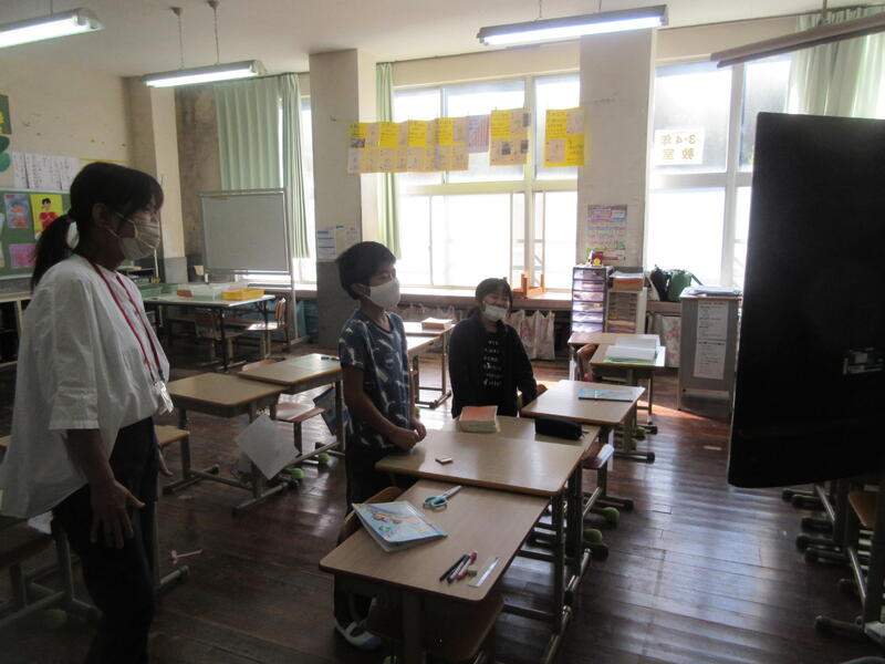 1学期最後の外国語サポーター(安藤先生)とALT(アナ先生)の訪問がありました。3・4年生の外国語活動では、友達に自分の好きなものときらいなものを紹介したり、尋ねたりしました。聞き取って理解できたときは、「OK」や「Yes」と言って互いに反応し合っていました。5・6年生の外国語科でも、アナ先生に「どんなおやつが好きですか」などと英語で尋ねたりしてコミュニケーションをとっていました。