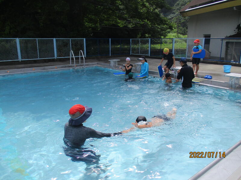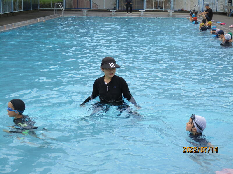 昨年度同様、浦城小のプールをお借りして浦城小の友達と一緒に水泳学習を行います。自分の目標に向かって水に浮いたり、潜ったり、泳いだりできるように指導をしていきたいと考えています。