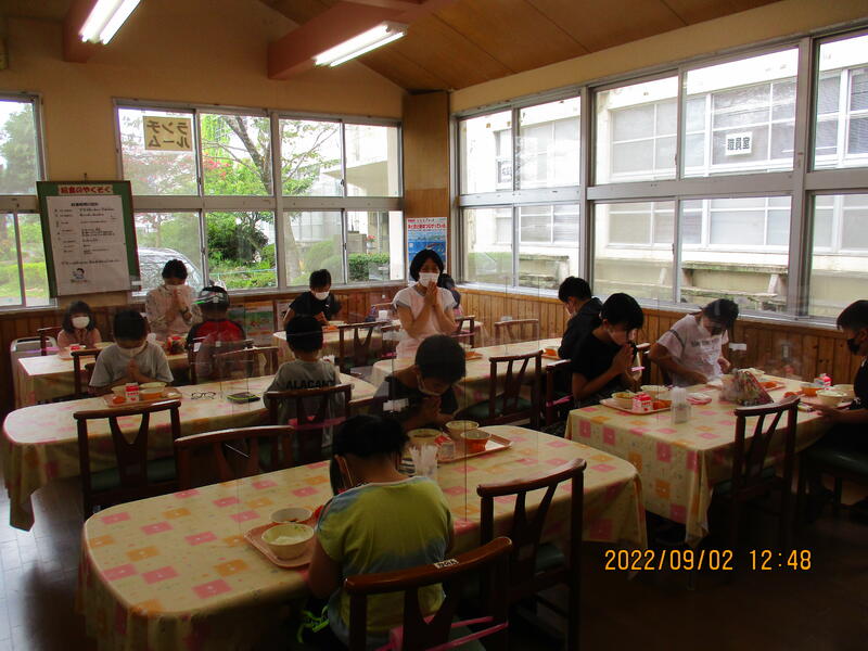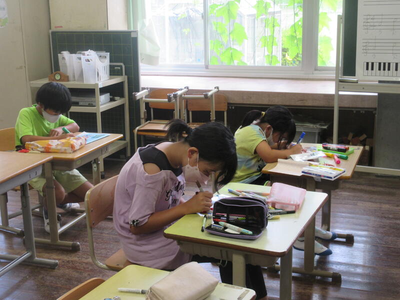 1学期も残すところ、あと3日となりました。1学期の学習内容もほぼ終わり、まとめをしたり、作品の整理をしたりしています。給食も明日までとなり、本日は子どもたちの好きな「なつやさいカレー」「ひゅうがなつサラダ」「とうにゅうプリン」でした。いつもより早く食べ終わる子どもが多かったです。夏休みはおうちでの食事になりますが、バランスのよい食事をとり、暑い夏を乗り切っていきましょう。