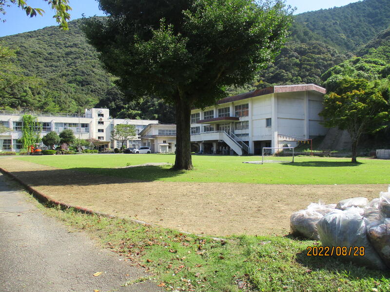 夏休みも半分が過ぎましたが、暑さが厳しい毎日です。学校の運動場やその周り、学校林は草が勢いよく伸び、技術員の湯浅先生が毎日あくせく刈り取ってくださっています。本日は、市の技術員指導員の佐野さんにもお手伝いいただき、梅林の下草刈りをしました。大変暑い中、作業をしていただき、ありがとうございました。おかげさまで、梅林がすっきりしました。