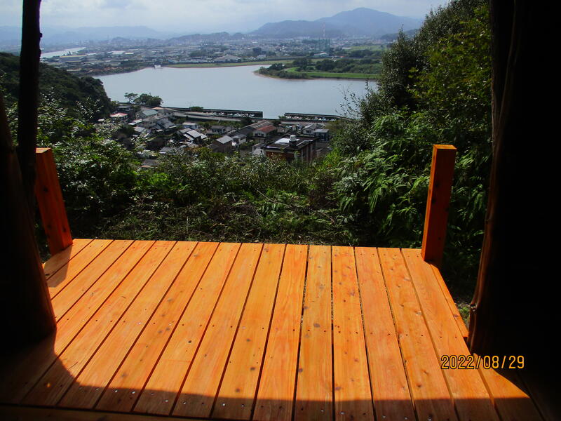 今回、恩流建築の大工さんにデッキ部分と階段を修繕していただきました。これまでは、デッキに出て延岡の町並みを一望できていませんでしたが、これで気持ちよく眺めることができるようになりました。