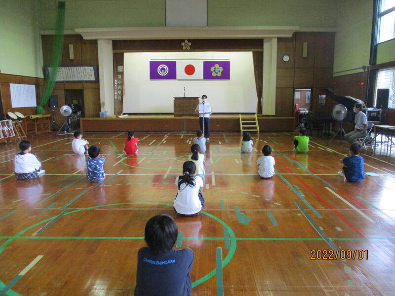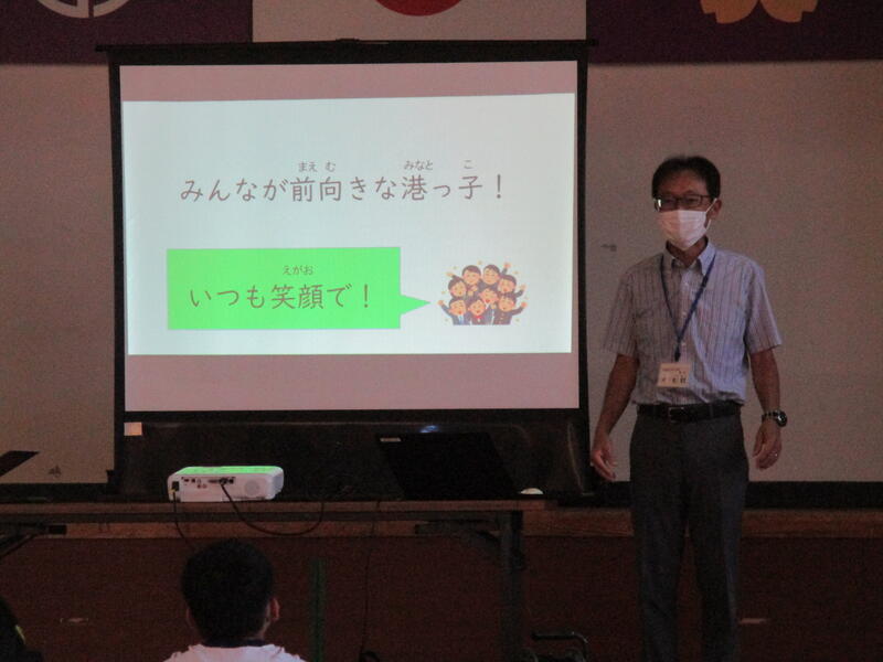 校長先生からは「目標を立て努力する」「きまりを守る」「なかまを大切にする」ことについての話がありました。また、2人の先生からは「2学期の学習で気をつけることや心構え」「あいさつや廊下歩行」についての話がありました。