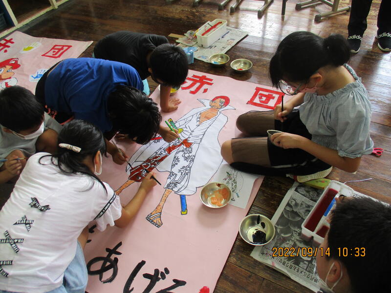 白団、赤団とも全員で協力して色塗りをしたり、文字を入れたりと丁寧に行っていました。