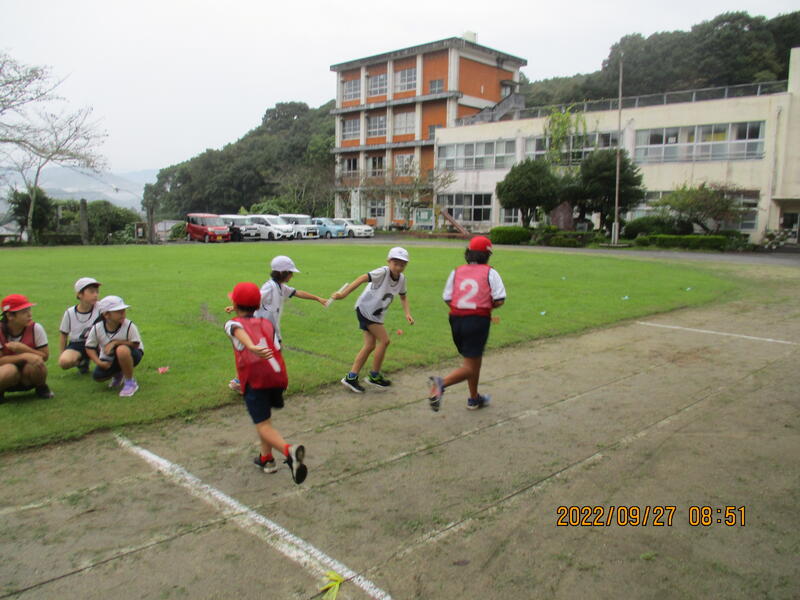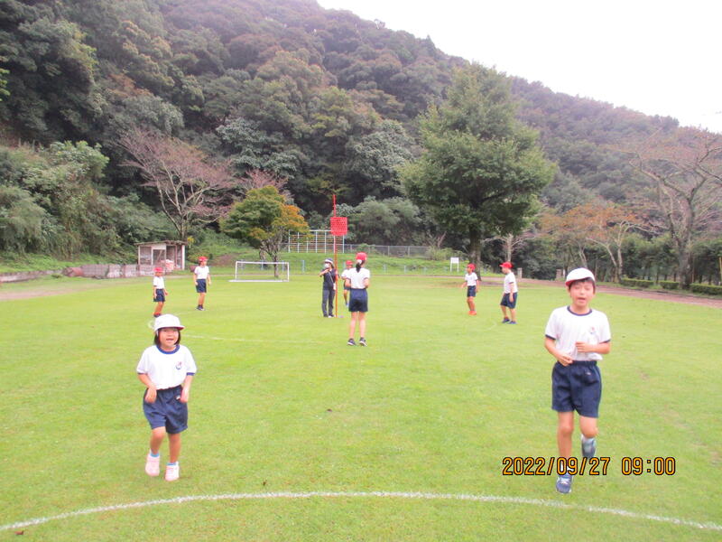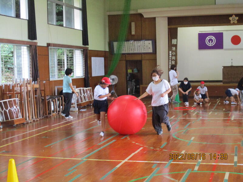 2学期になって最初の参観日でした。授業参観では、運動会の親子団技の練習を行いました。上学年は「台風の目」を、下学年は「大玉転がし」を保護者の方と一緒に練習しました。子どもたちの勢いに負けないように保護者の方も一生懸命競技に参加しました。本番では、親子で協力して優勝目指してがんばりましょう。