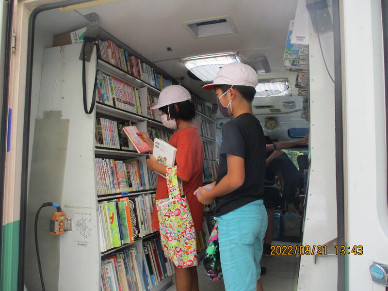 9月に入って2回目のふくろう号が来ました。今回も前回に引き続き、勉強に関する本や興味を示している資料などを思い思いに借りていました。