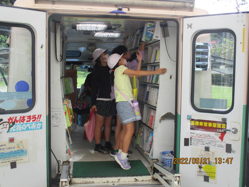 本日は市立図書館からの移動図書「ふくろう号」が来ました。学校図書館だけでなく、市立図書館にある本を借りることができるので、月1回のふくろう号を楽しみにしています。自分が読みたい本の予約もできるので大変助かっています。本は心を豊かにしてくれるとても大切なものです。時にはメディアから離れて、家族で読書をする時間を設けてみてもいいですね。