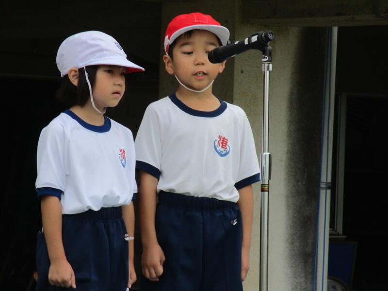 今年のスローガンは「みんなで 心を燃やせ 港っ子」で、みんなで協力しながら一つの目標に向かってがんばっていきます。