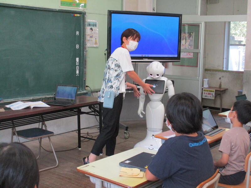 川島小からやってきたペッパーくんは港小へは3ヶ月間だけの仲間入りです。