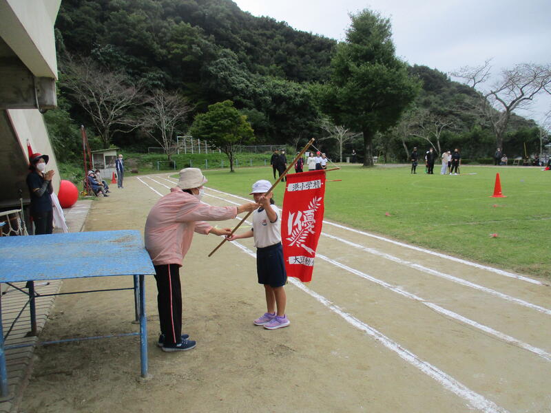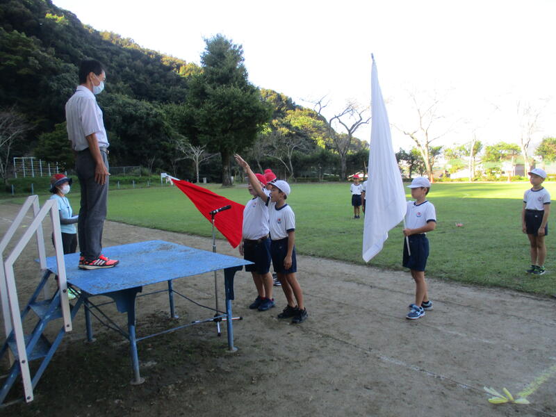 子どもたちは、この1ヶ月間、毎日、競技や応援、係の練習をがんばってきました。昼休み時間には応援の内容を考えたり、リレーの練習をしたりと協力しながらがんばりました。今日は、その成果を保護者やじいちゃん、ばあちゃん、地域の方々に披露することができました。白団は競技の部優勝、赤団は応援賞と両団とも一致団結してがんばりました。また、親子団技では、保護者の方も我が子に負けないくらい熱心に取り組んでいました。