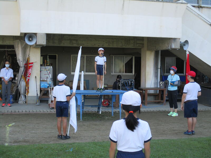 白団団長に6年の渡邉賢士朗くん、副団長に5年の喜多妃奈子さん、赤団団長に6年の矢野壮真くん、副団長に6年の岡田竜飛くんが決まりました。団長・副団長を中心に、一致団結して競技や応援の練習をしていきます。