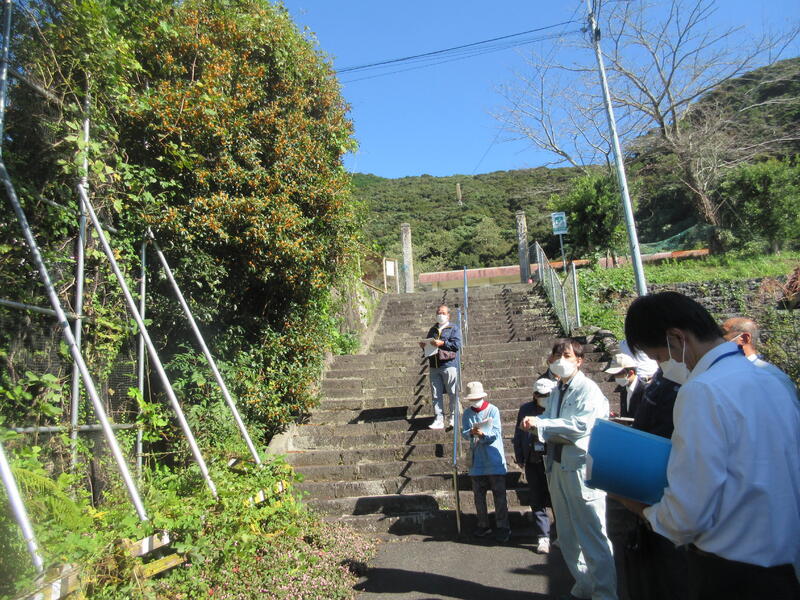 本日の午後、子どもたちが登下校する通学路の点検を行いました。延岡警察署、県土木事務所、市土木課、市交通政策課、市学校教育課、区長さんに来ていただきました。家屋の倒壊や交差点付近の安全確保について実地調査を行いました。子どもたちが安全に登下校できるように対策を講じていただく予定です。