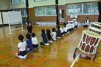 今は、基本練習。リズムに合わせて、声に出して、体を使って、太鼓を打ちます。