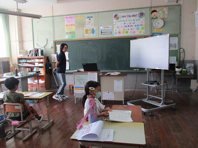 2年生は、かけ算の学習に入っています。元気な声で九九を唱えていました。やる気いっぱいです!1年生は、問題集に黙々と取り組みました。