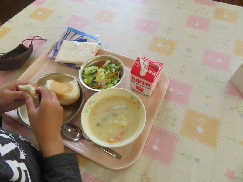 今日27日は、延岡市の「学校の臨時休業に伴う児童・生徒への食事支援事業」として、希望する子供達へ、給食スタイルでの食事提供が行われました。献立は、「豆乳シチュー・日向夏ドレッシングサラダ・パン・牛乳」です。シチューにはアスパラガスやジャガイモ、ベーコンなどが入っていて、栄養豊富でした。「ホクホクしておいしいです。」等の感想が聞かれました。長期の臨時休業の間、県内では「家ではお昼ご飯を抜いている。」「ほとんどカップラーメンばかりしか食べていない。」というような事例もあると聞きます。延岡市でもそうした状況が出てくることを懸念して、力を入れた今回の取組です。臨時休業中、感染症予防のための安全、学習面の対応と共に、子供達にとって、栄養バランスのとれた食事も大切であることを感じさせられます。