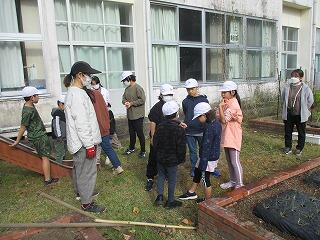 苗を移植し、水をやり、明日以降の水やりや除草の当番を決めました。