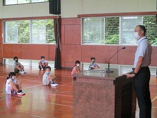 日髙克哉教頭先生の転任に伴い、15日(月)淵上博司教頭先生が着任されました。職員朝会での紹介の後、8時15分から全校で新任式を行いました。6年の片平さんが全校児童を代表して歓迎の言葉を述べました。淵上教頭先生は、延岡市立南小学校の主幹教諭からこの度、教頭に昇任されました。初めての教頭職で、途中からの異動となりますが、早く港小学校に慣れていただけることと思います。