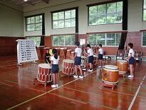 7月2日(火)、雲海太鼓の平野勝己氏をお招きして、港小わんぱく太鼓の練習が体育館で行われました。