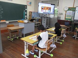 ↓ 5・6年生は算数でした。5年生は「合同な図形」、6年生は「場合を順序よく整理して」の学習でした。難しい内容ですが、がんばって考えました。