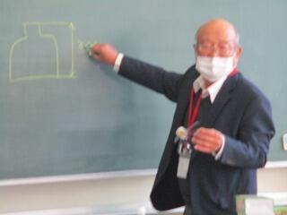 今日の2・3校時6年生はジュニア科学スクールがありました。野口遵顕彰会理事の田中公宜先生が指導してくださいました。「ペットボトル風力発電機を組立て、そのしくみを学習する」というテーマです。ペットボトルで作った風車を回し、モータが回転して発電することによってLEDライトを点灯させる実験です。