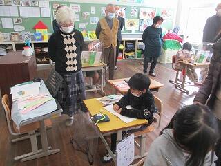 コンピュータ活用についての質問や、「あいさつが日々よくなってきている。」というお褒めの言葉をいただきました。