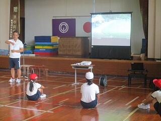 今日は、2回目の全体練習でしたが、またまた雨のため体育館で行いました。昨年の運動会の様子を記録映像で見た後、エール練習や閉会式練習を行いました。応援賞の評価は全体練習から始まっていることもあり、みんな真剣です。