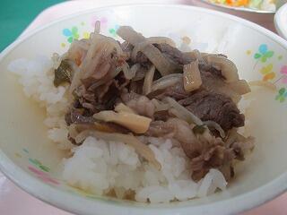 給食は二日連続で地元食材です。和牛丼が出ました。さすが、牛肉の甘みがしっかりとしていました。