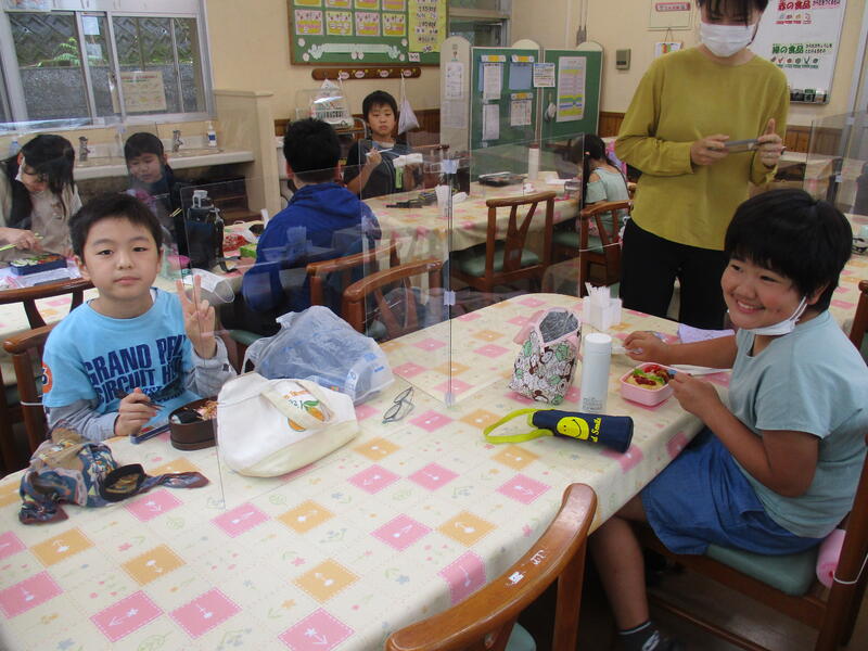 本日は弁当の日でもありましたので、子どもたちの中には、いつもより早起きして、おうちの人と一緒に弁当を作ったようです。おにぎりを作ったり、おかずを作ったりとがんばりました。全員、にこにこしながら弁当を食べていました。おうちでも食事づくりなど家族の一員として進んで手伝いをやっていってほしいです。
